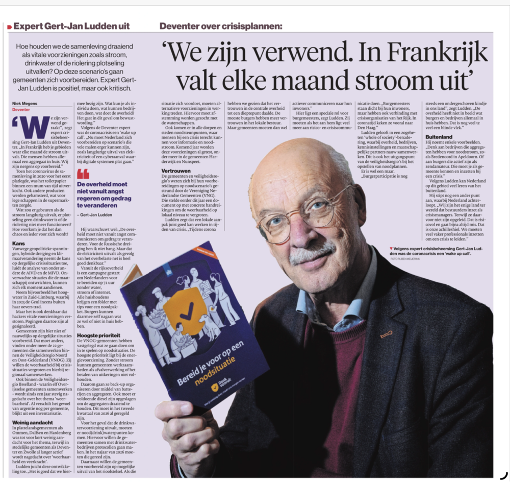 - Lees hier het interview met Gert-Jan Ludden in de Stentor (november 2025) over de overheidscampagne 'Bereid je voor op een noodsituatie'